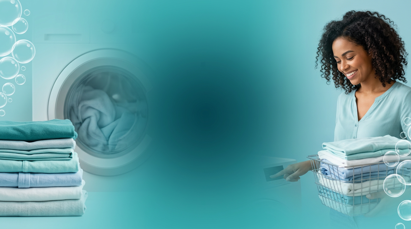 Roupas limpas com eficiência e praticidade em máquinas modernas e produtos profissionais.